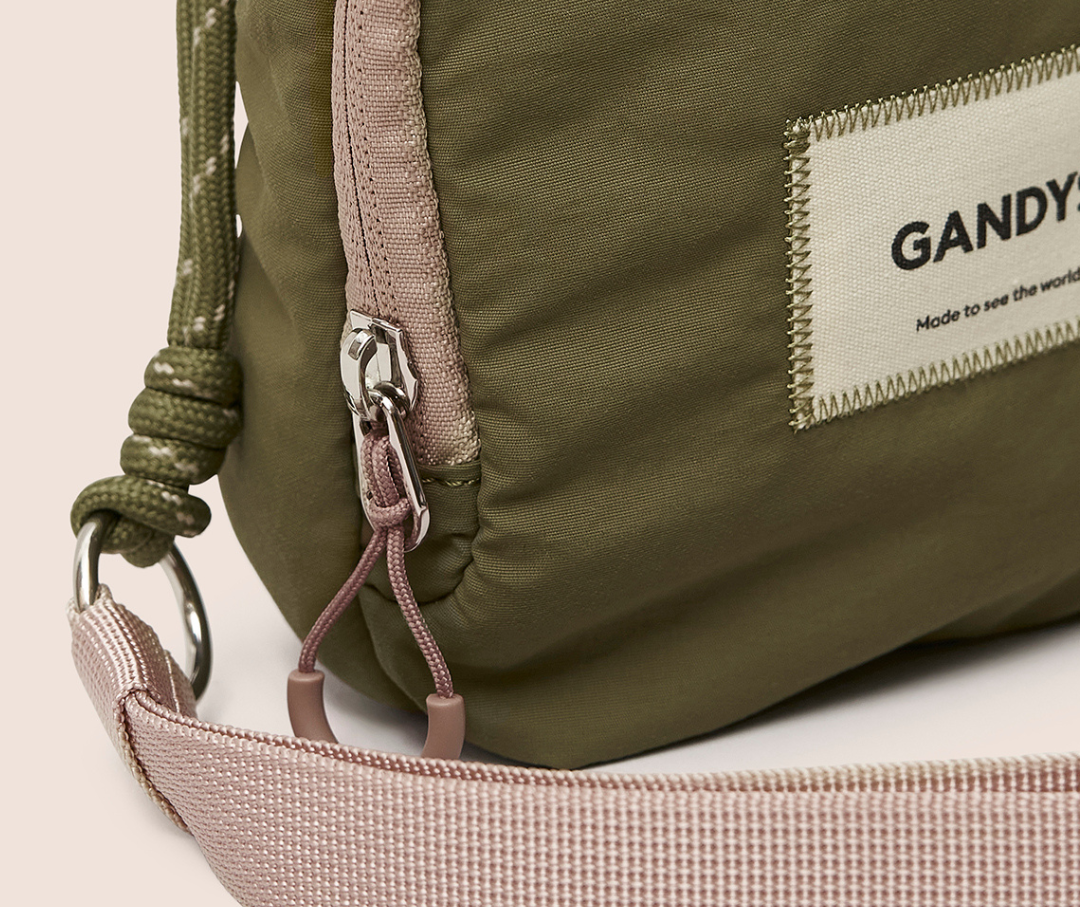 Bello Recycled Fabric Small Crossbody Bag in Khaki